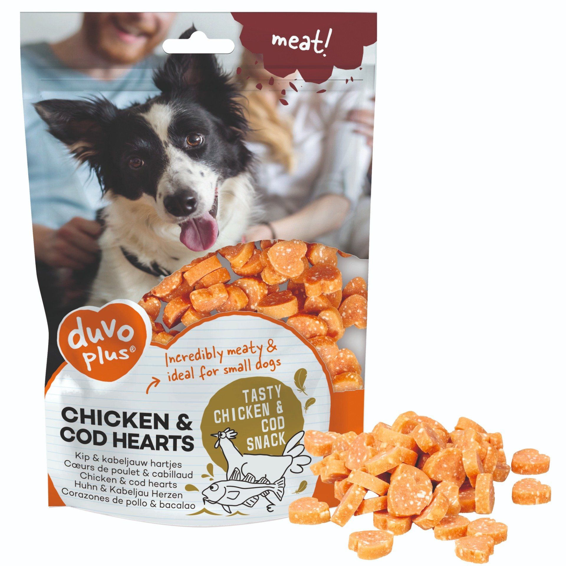 Ces délicieux cœurs à base de poulet et de cabillaud sont parfaits comme en-cas pour les chiens de petite taille.