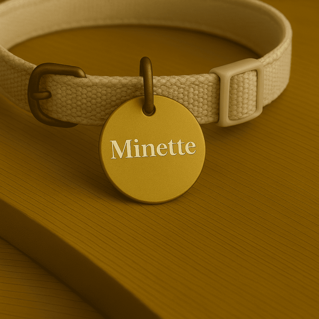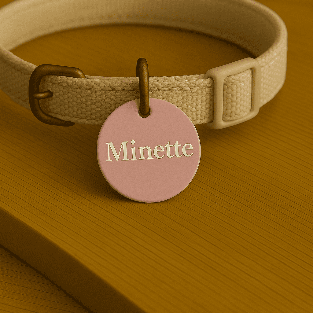 🐾 Médaille personnalisée pour chat et petit chien : aluminium anodisé léger, durable et anti‑oxydation. Gravure laser précise. Prénom au recto, numéro(s) au verso. Anneau inclus. Forme ronde 25 mm, parfaite pour les petits animaux.
