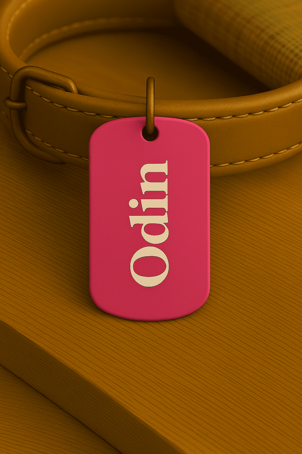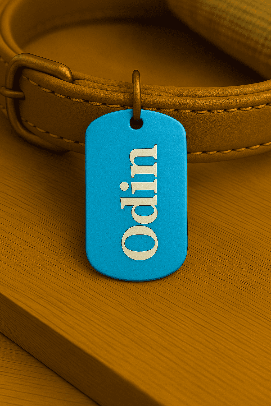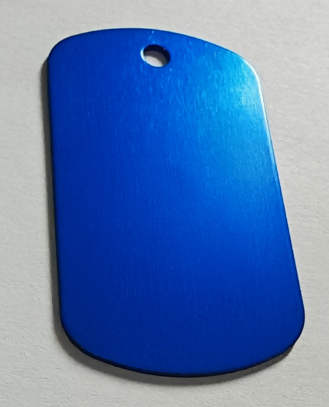 Médaille personnalisée en forme de plaque militaire, en aluminium anodisé léger et durable. Gravure laser du prénom au recto et 1 ou 2 numéros au verso. Plusieurs couleurs et polices au choix. Anneau fourni. Idéale pour identifier votre animal.