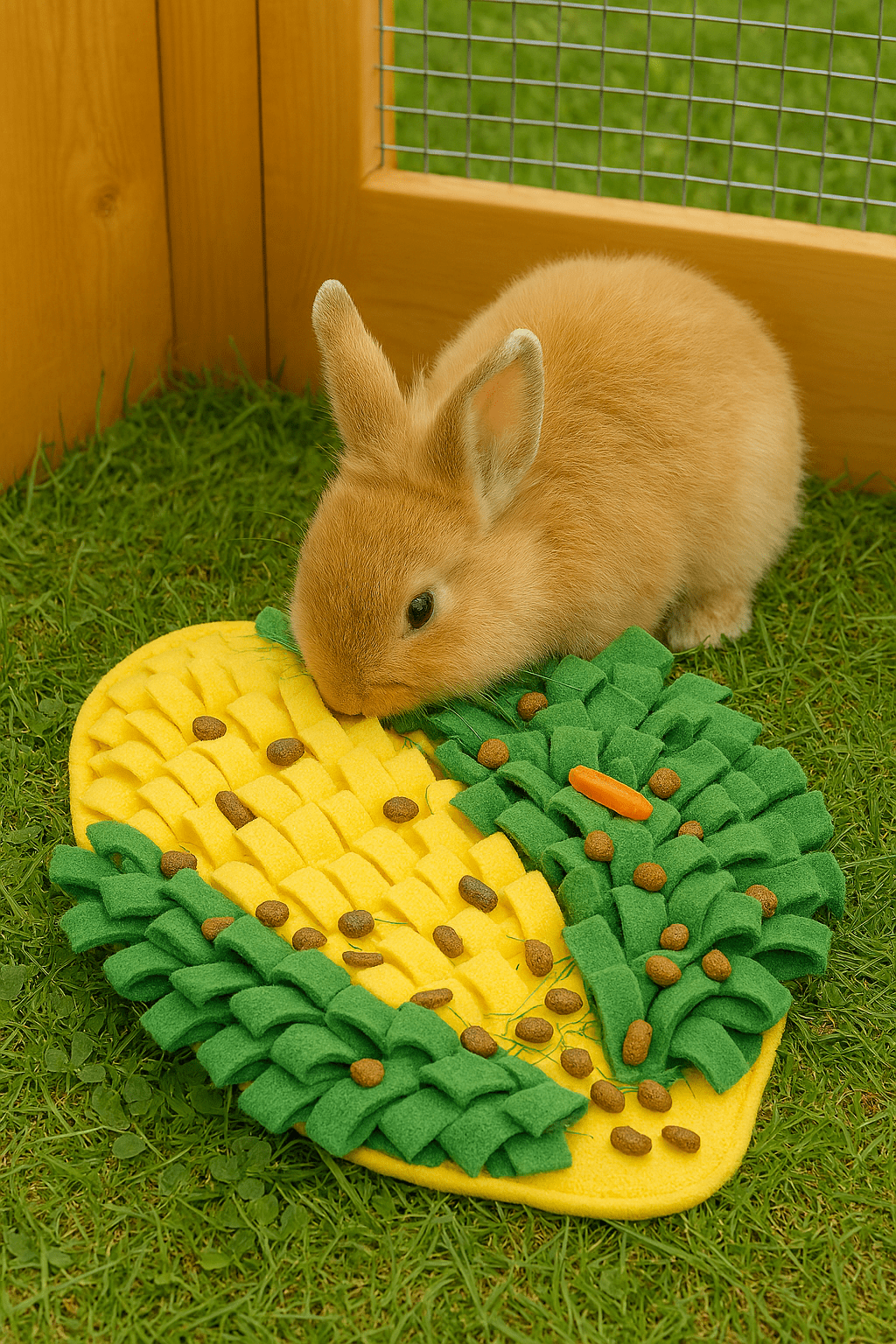 Tapis de fouille pour petits animaux : cachez fruits, légumes ou friandises pour stimuler la recherche naturelle de nourriture. En polaire douce, fond antidérapant. Dimensions 32 × 21 × 4 cm. Ne pas laisser sans surveillance.